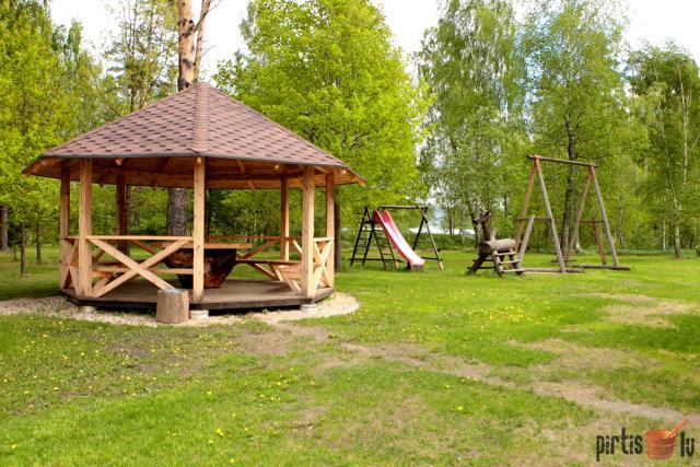 Viesiem ir iespēja pavizināties ar laivu un ūdensvelosipēdu, izmantot  šūpoles.