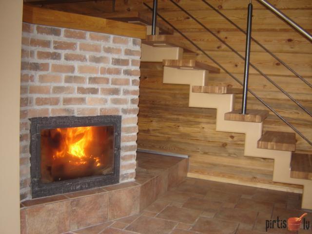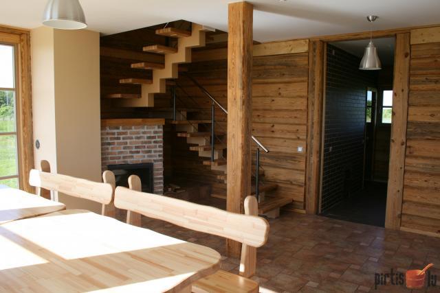 - Atpūtas zāle ar kamīnu, savienota ar virtuvi
