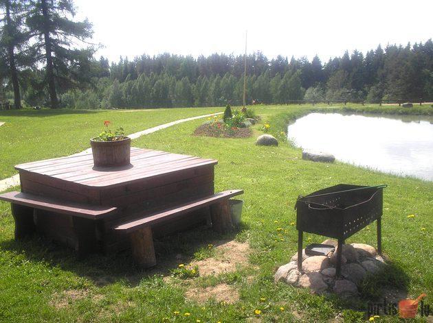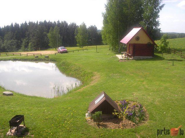Blakus esošā dīķa malā - īsta lauku pirts, kur pērties uz nebēdu.