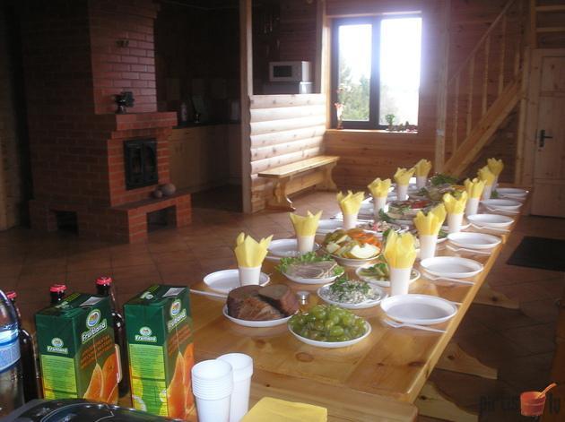 Banketu zālē varam uzņemt līdz 30 personām ar labiekārtotu virtuvi (elektriskā plīts, ledusskapis, elektriskā tējkanna) ar saulainu terasi un balkonu ar skatu uz ezeru.